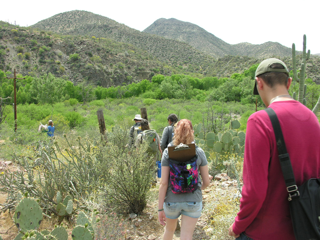 Students in the Applied Ecology: Systems Thinking course and the Arid Lands Management course took a field trip to Aravaipa Canyon. They were hosted by three BLM employees: two wildlife biologists and one wilderness ranger. Both classes learned about native fish, and how scientists catch, measure, collect data on them, and then properly release them. The Applied Ecology course collected data on the macro-invertebrates found in the creek to augment their studies back in Tucson, while the Arid Lands Management course collected data on the types and patterns of local vegetation, which they will apply to the watershed restoration project back on campus.