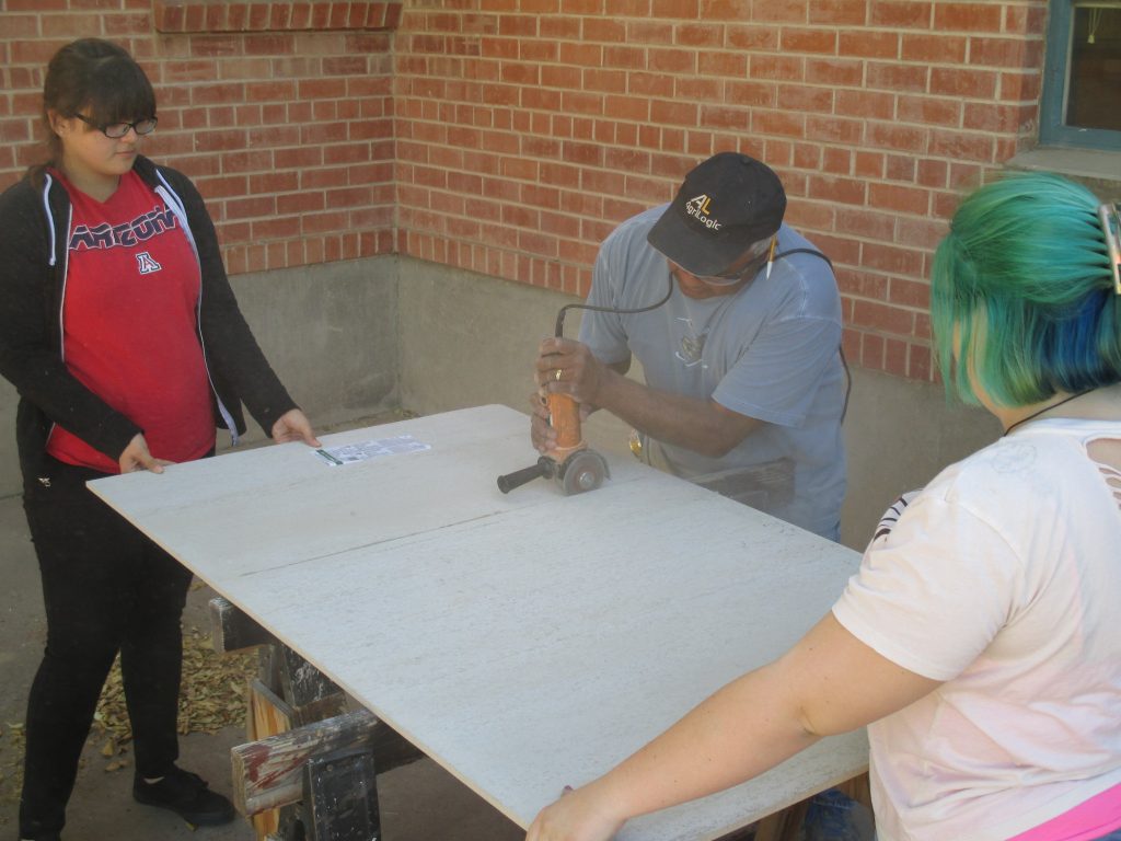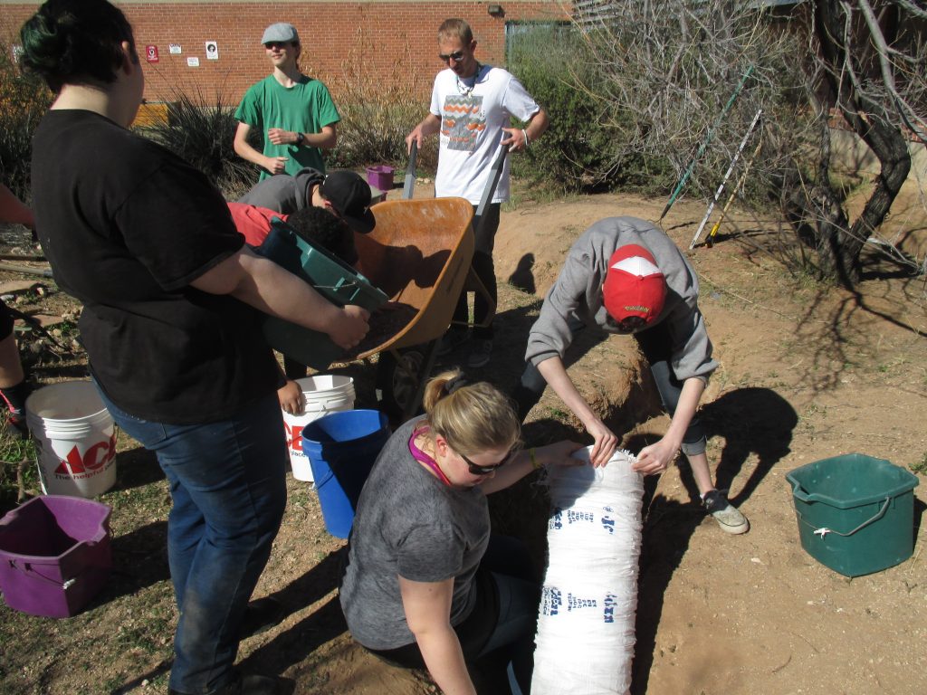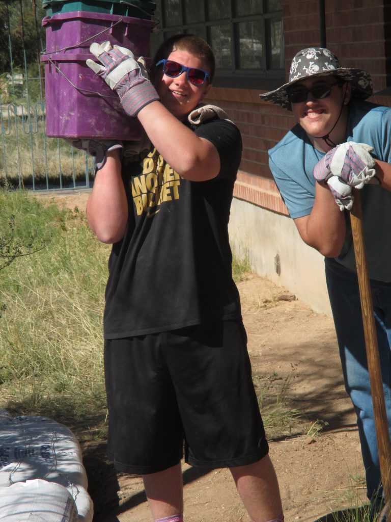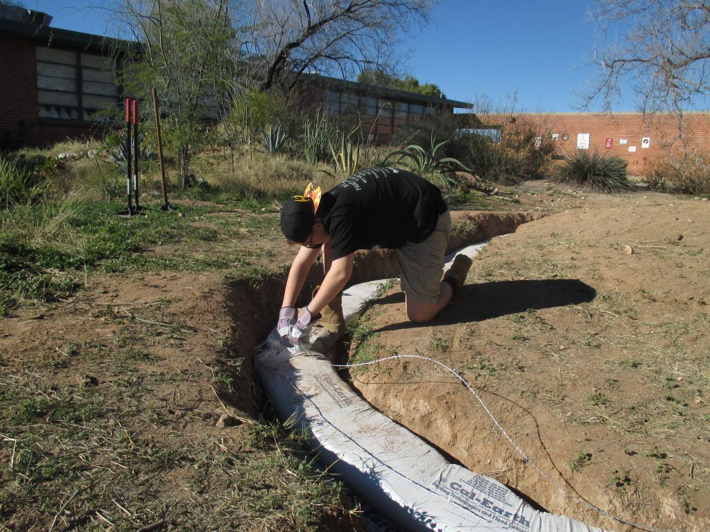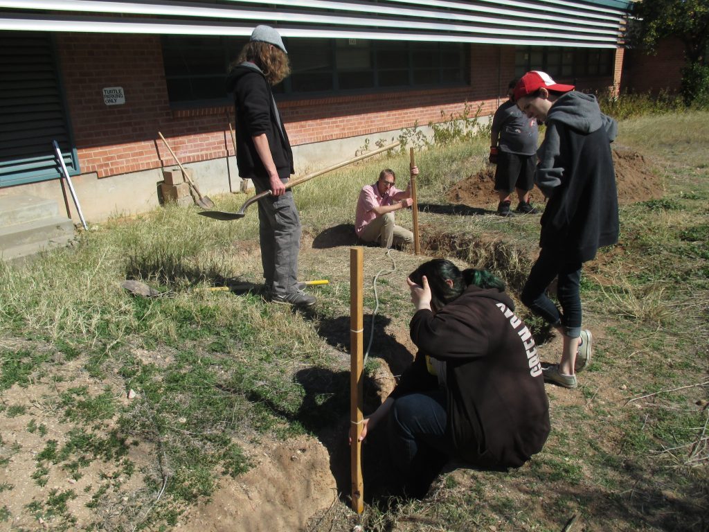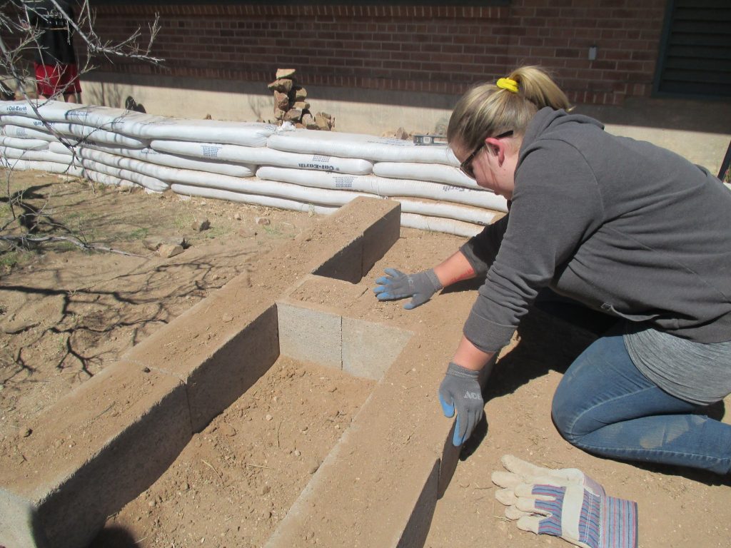 Last year, students in the Projects, Research, and Design class wrote a grant to the AZ Game and Fish Dept. Heritage Fund to build a desert tortoise habitat in the school’s courtyard. They received the grant, but did not have enough time to actually begin construction. That was the job of this year’s Ecobiology students. After spending much time in the classroom learning about desert tortoise physiology, anatomy, behavior, adaptations and ecological relationships, as well as captive care, the students got to work on building the habitat.