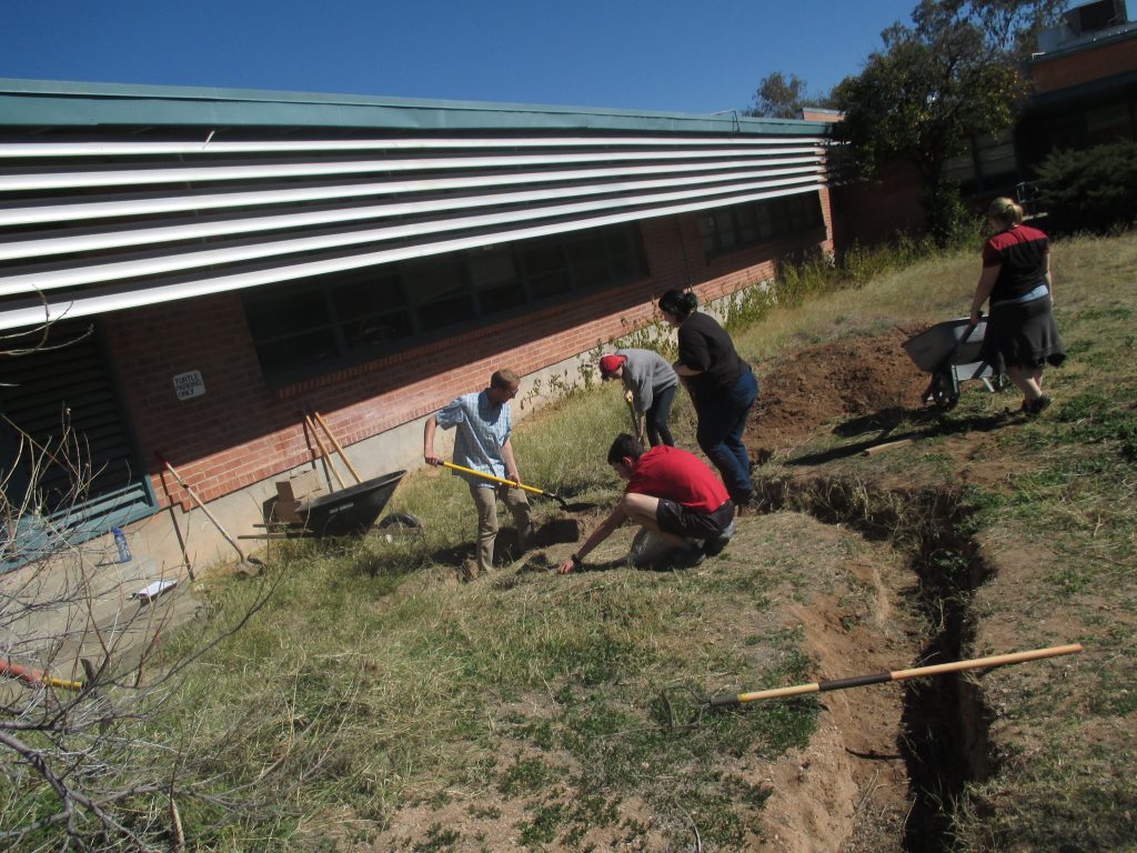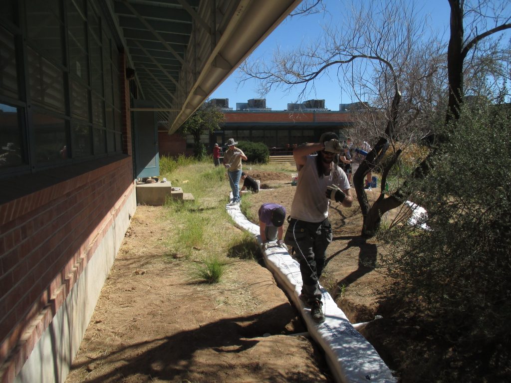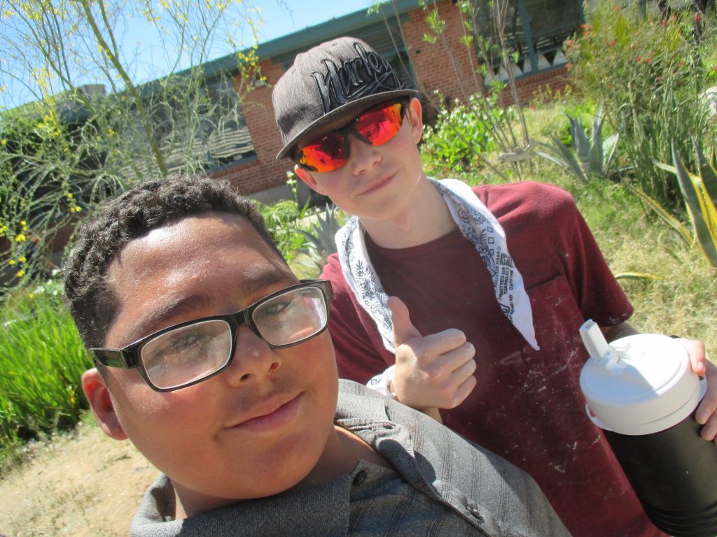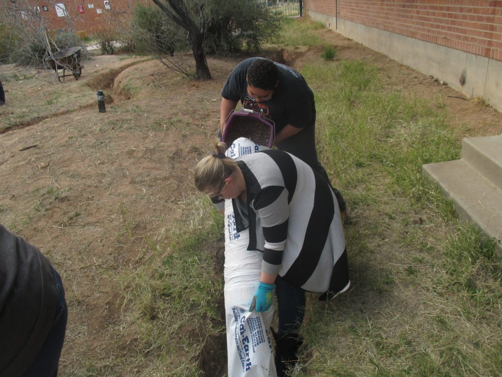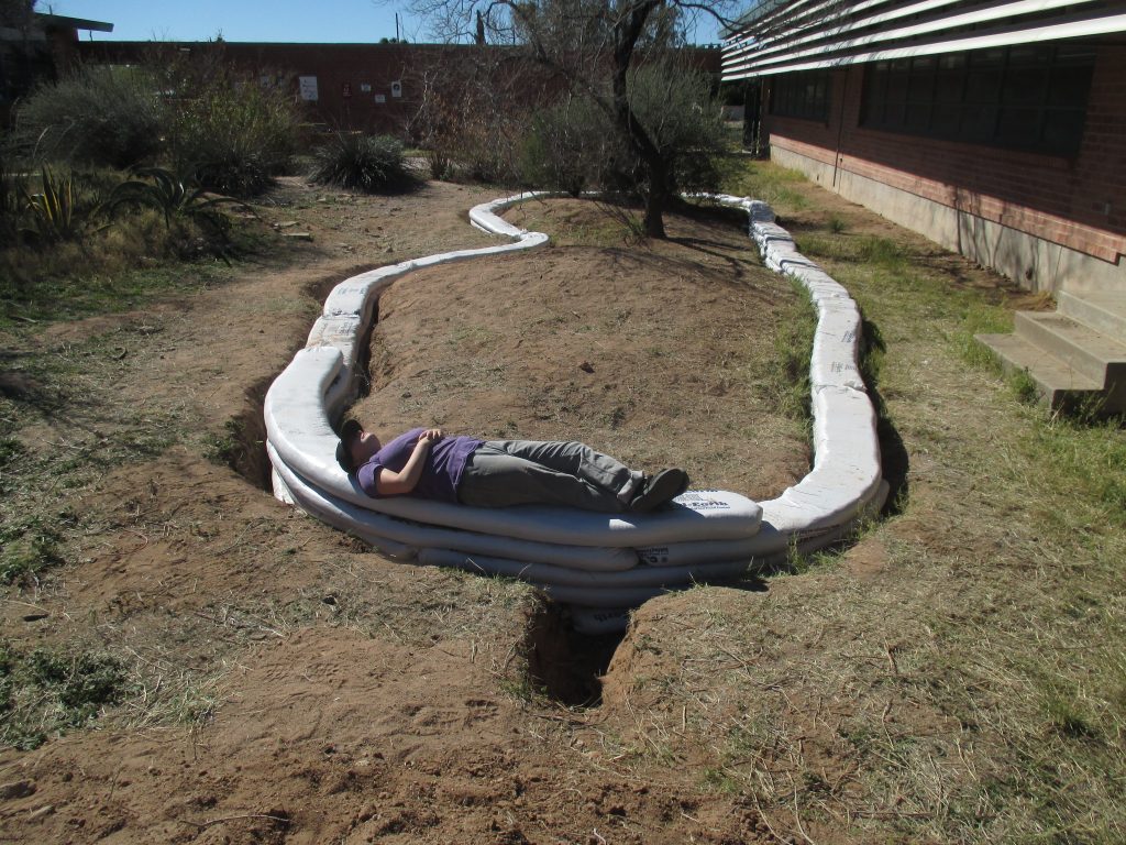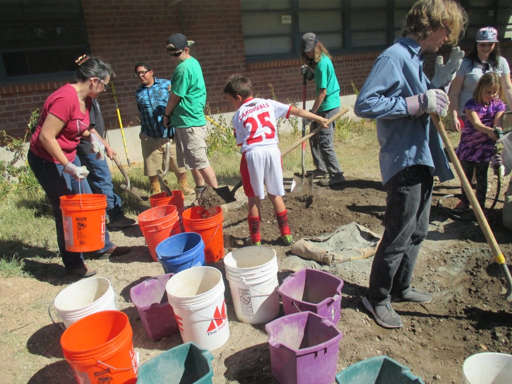 Last year, students in the Projects, Research, and Design class wrote a grant to the AZ Game and Fish Dept. Heritage Fund to build a desert tortoise habitat in the school’s courtyard. They received the grant, but did not have enough time to actually begin construction. That was the job of this year’s Ecobiology students. After spending much time in the classroom learning about desert tortoise physiology, anatomy, behavior, adaptations and ecological relationships, as well as captive care, the students got to work on building the habitat.