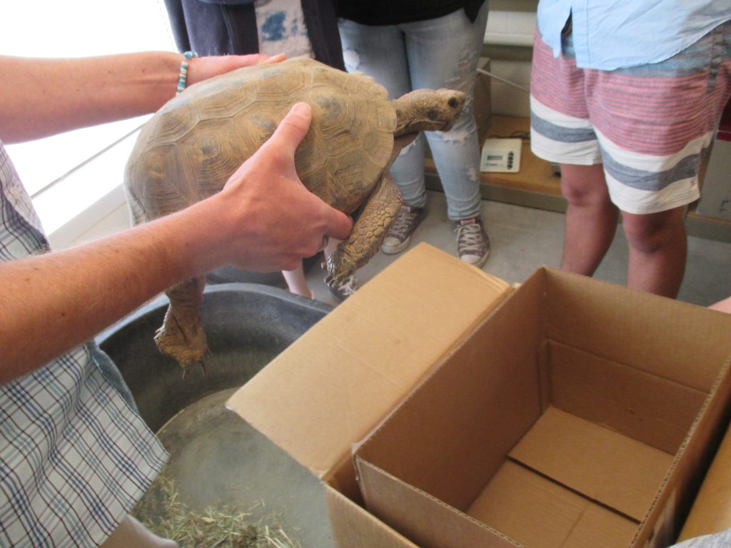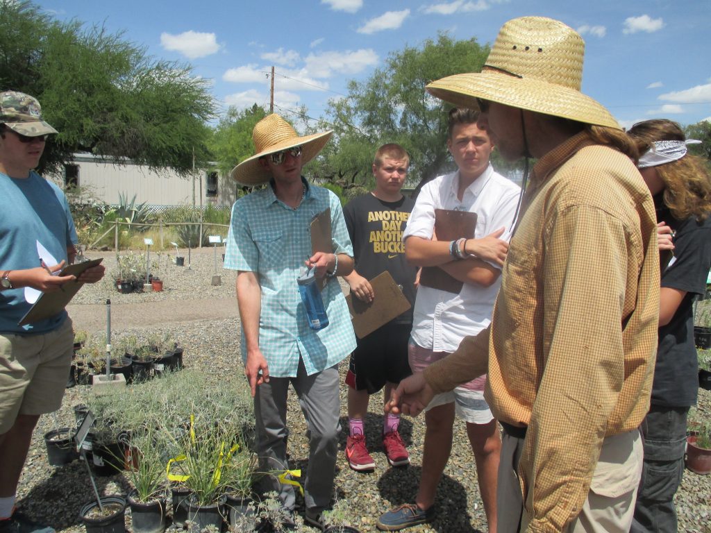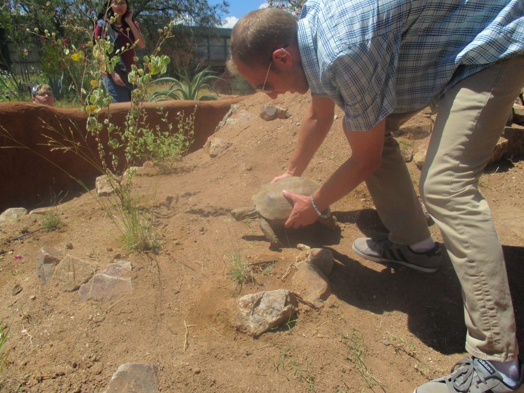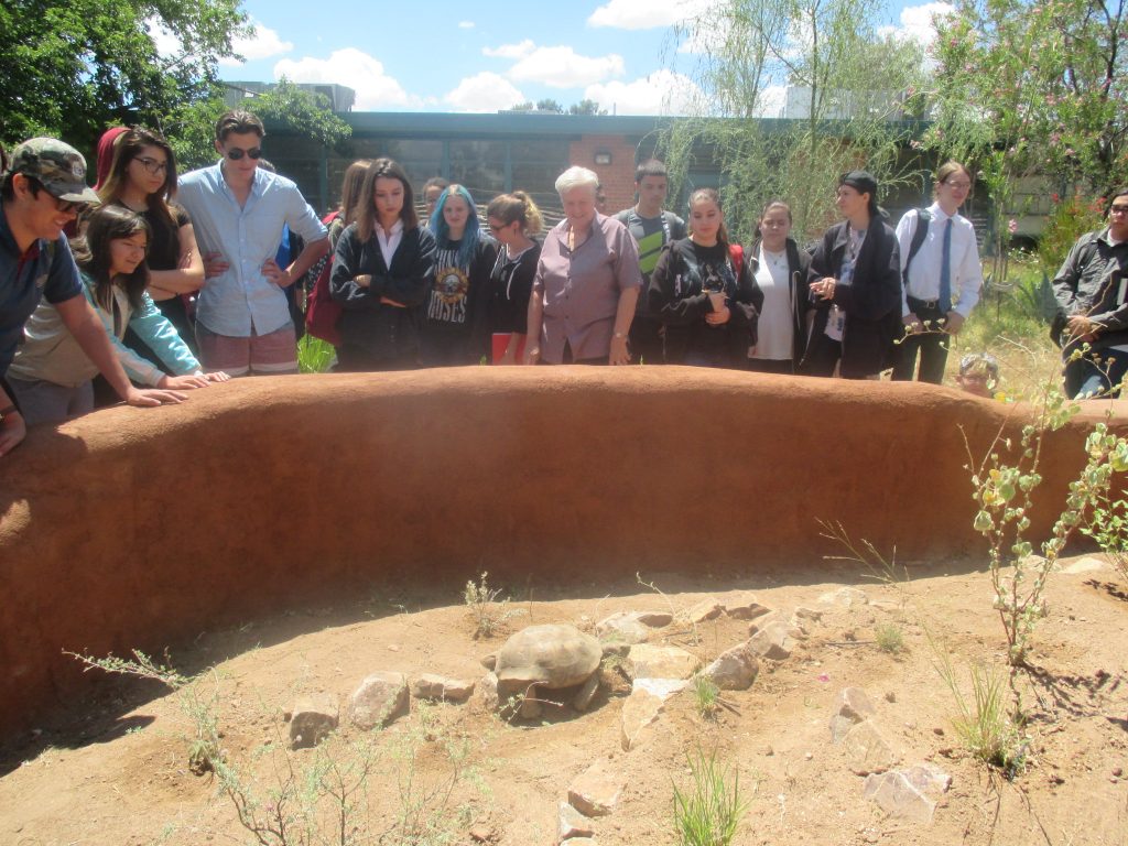 After building the enclosure, the students constructed a burrow, researched and developed a list of native food plants for the tortoise, and then traveled to Desert Survivors Nursery where Sky Islands’ good friend Jim Verrier helped the students select the right plants, as well as impart some of his vast knowledge of all things botanical. After the irrigation was installed and the plants were put in the ground, it was off to the Desert Museum, where Renée Lizotte, the Tortoise Adoption Coordinator, led the students behind the scenes and helped them find the perfect tortoise.