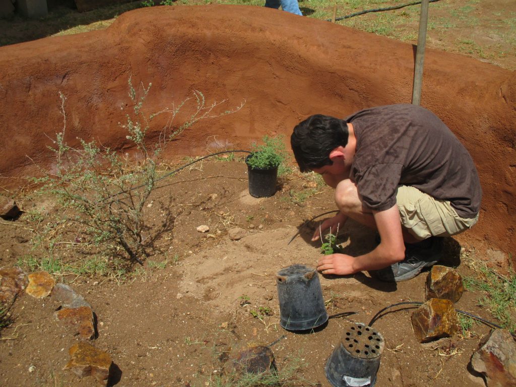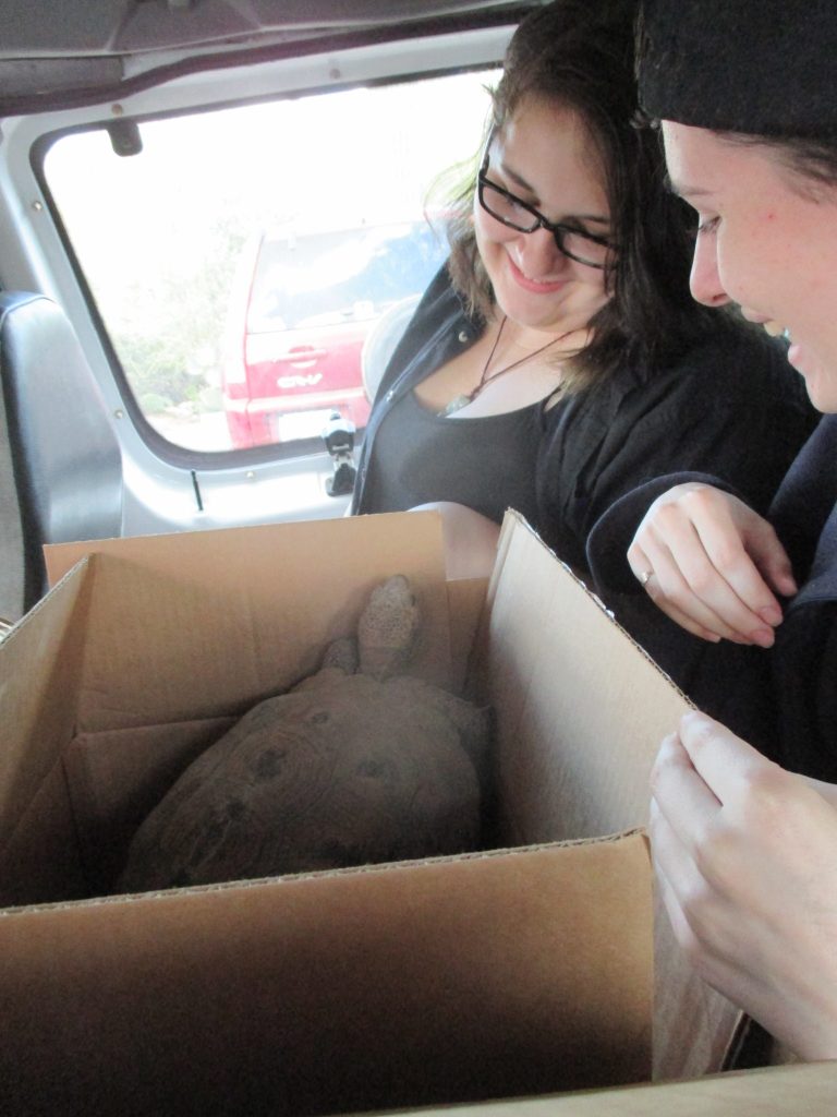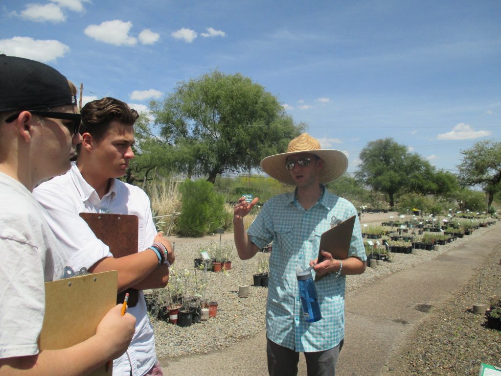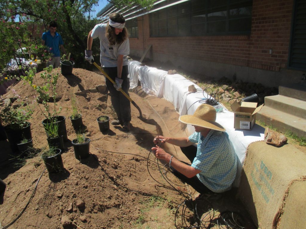 After building the enclosure, the students constructed a burrow, researched and developed a list of native food plants for the tortoise, and then traveled to Desert Survivors Nursery where Sky Islands’ good friend Jim Verrier helped the students select the right plants, as well as impart some of his vast knowledge of all things botanical. After the irrigation was installed and the plants were put in the ground, it was off to the Desert Museum, where Renée Lizotte, the Tortoise Adoption Coordinator, led the students behind the scenes and helped them find the perfect tortoise.