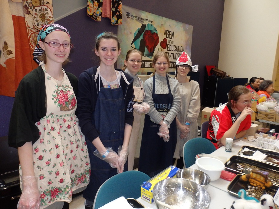 In addition to honing their reading, writing, and speaking skills, students in Japanese II also got to experience many other aspects of Japanese culture, such as calligraphy, playing the koto, making suminagashi (Japanese marbled ink art), and making and selling Japanese food at school and at the annual Mochitsuki Festival at Pima Community College! The students also made friends with pen pals at a high school in Japan, helping them practice their language skills while learning about Japanese culture through, and vice versa.