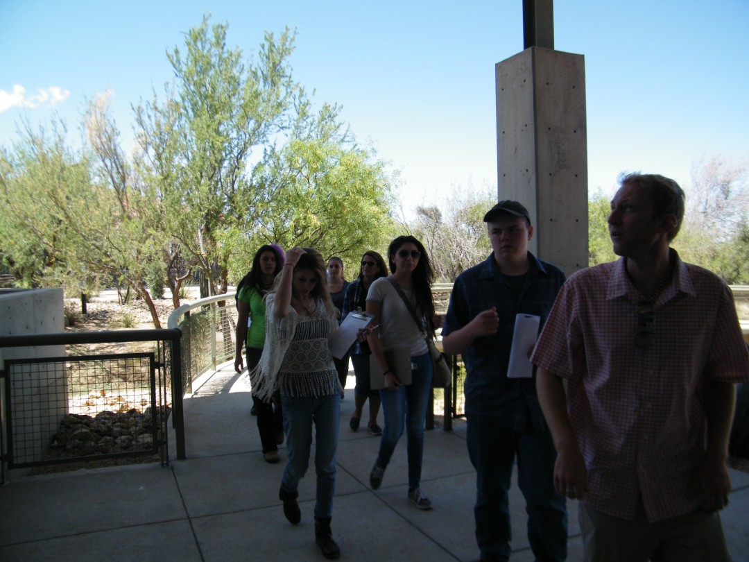 First, we visited the Tohono O’Odham Cultural Center (Himdag Ki) in Topawa, where our guides Bernard Siquieros and Jeannette Garcia gave us a wonderful presentation about the culture, history, and ethnobotany of the Tohono O’Odham. Then we visited the Desert Rain Cafe and Gallery in Sells, where we also learned about TOCA (Tohono O’Odham Community Action) and their efforts to maintain O’Odham culture, health, and economic self-sufficiency. Finally, we drove up Kitt Peak into the Baboquivari Mountains-the sacred heart of the O’Odham Nation, where we could almost see all the four corners of the traditional O’Odham homeland.